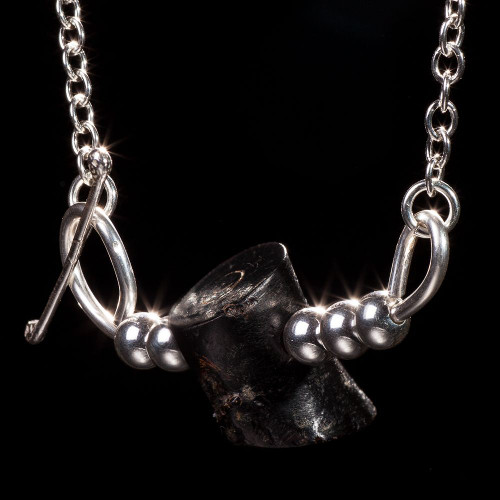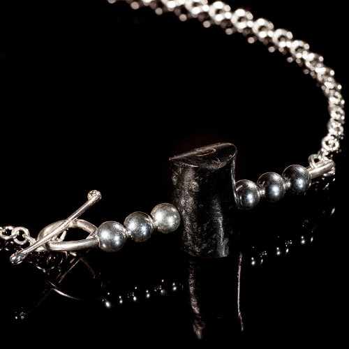 Very rare vintage black coral log on silver carrier with silver beads on silver chain with handmade silver toggle fastening
