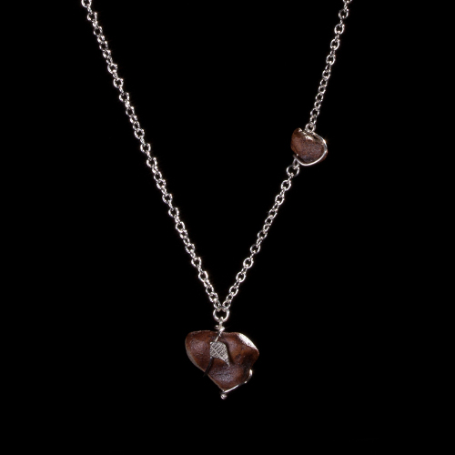 Handmade ceramic bead wrapped with silver wire and silver leaf detail pendant suspended on a silver chain with handmade ceramic bead and handmade silver ring and toggle fastening